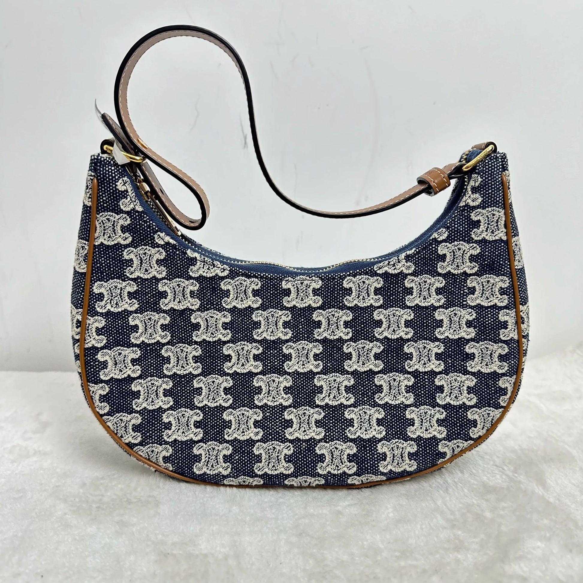 【#263】Pre-owned Celine Triomphe AVA Denim Blue Monogram Embroidery Shoulder Bag Handbag BJ2021