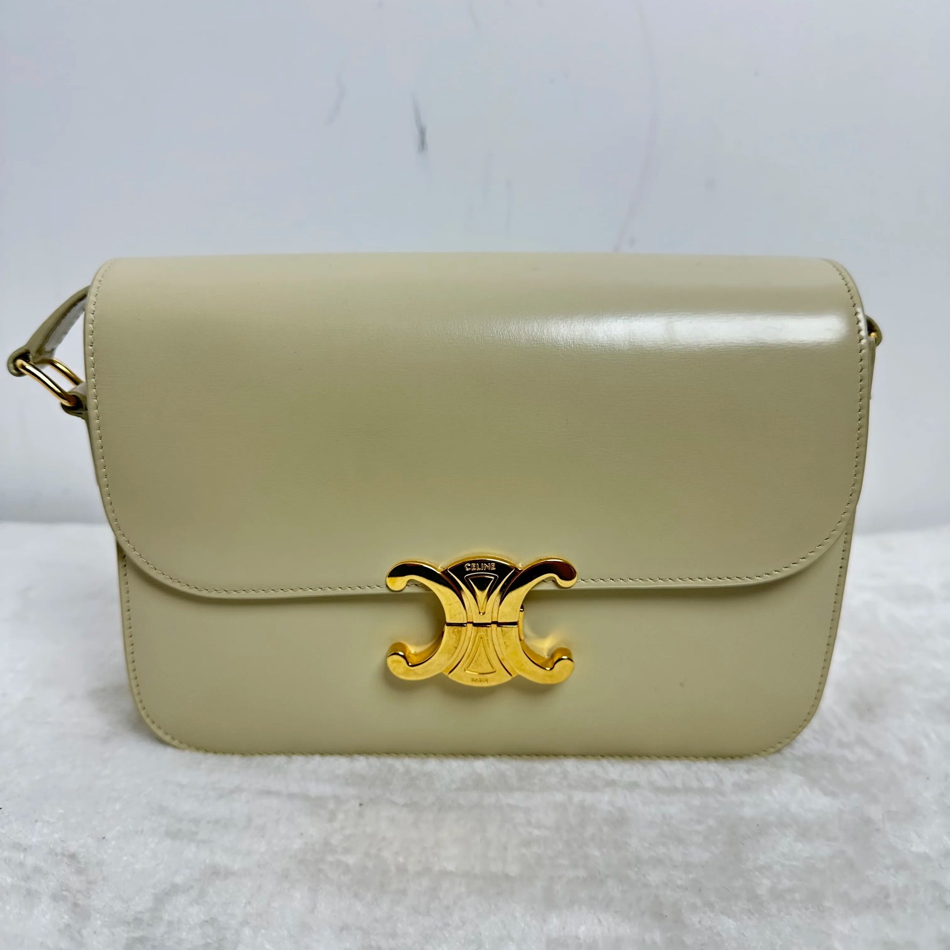 【#264】Pre-owned Celine Triomphe White Cowhide Shoulder Bag Handbag BJ2023