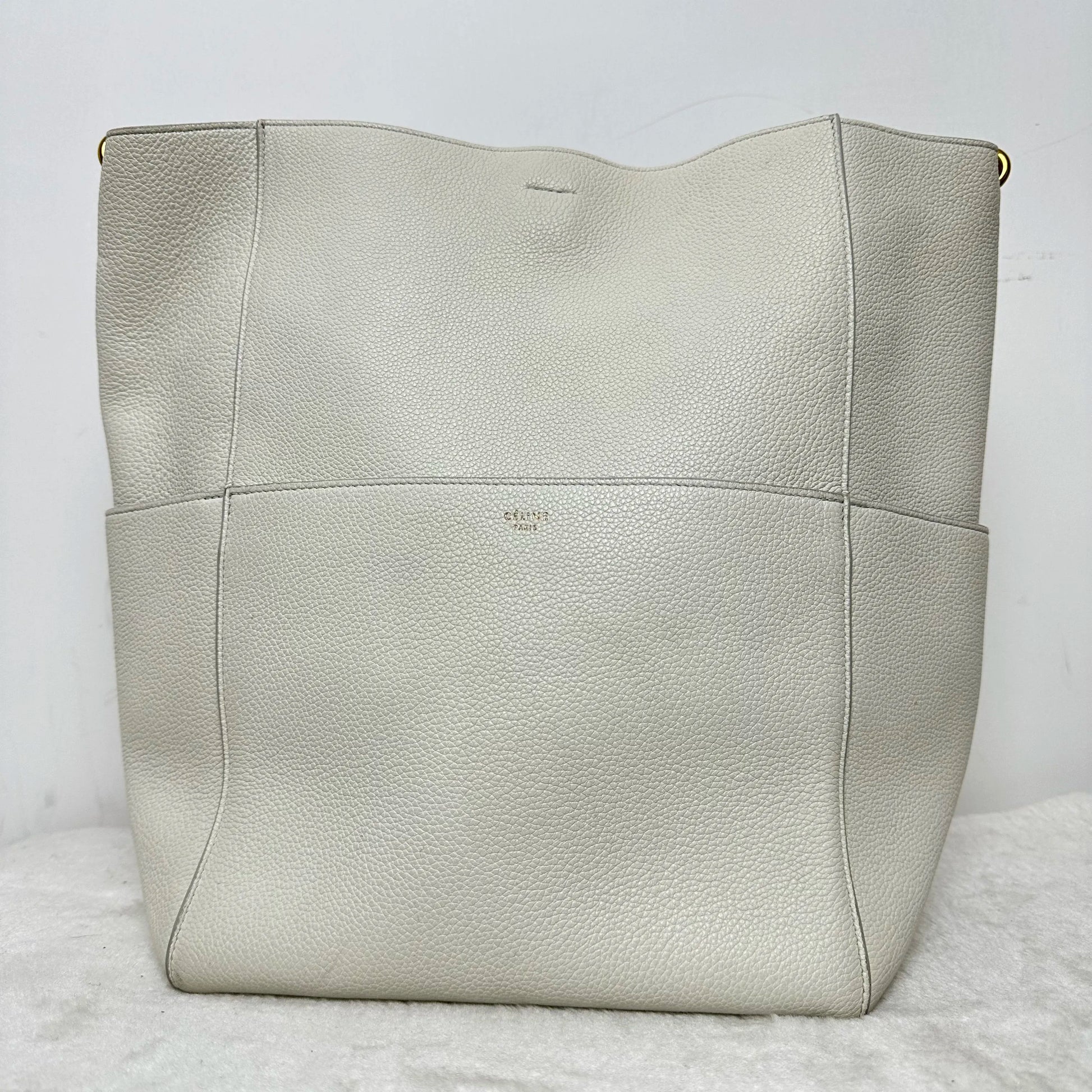 【#322】Pre-owned Celine Sangle Bucket Light Grey Cowhide Shoulder Bag BJ2016