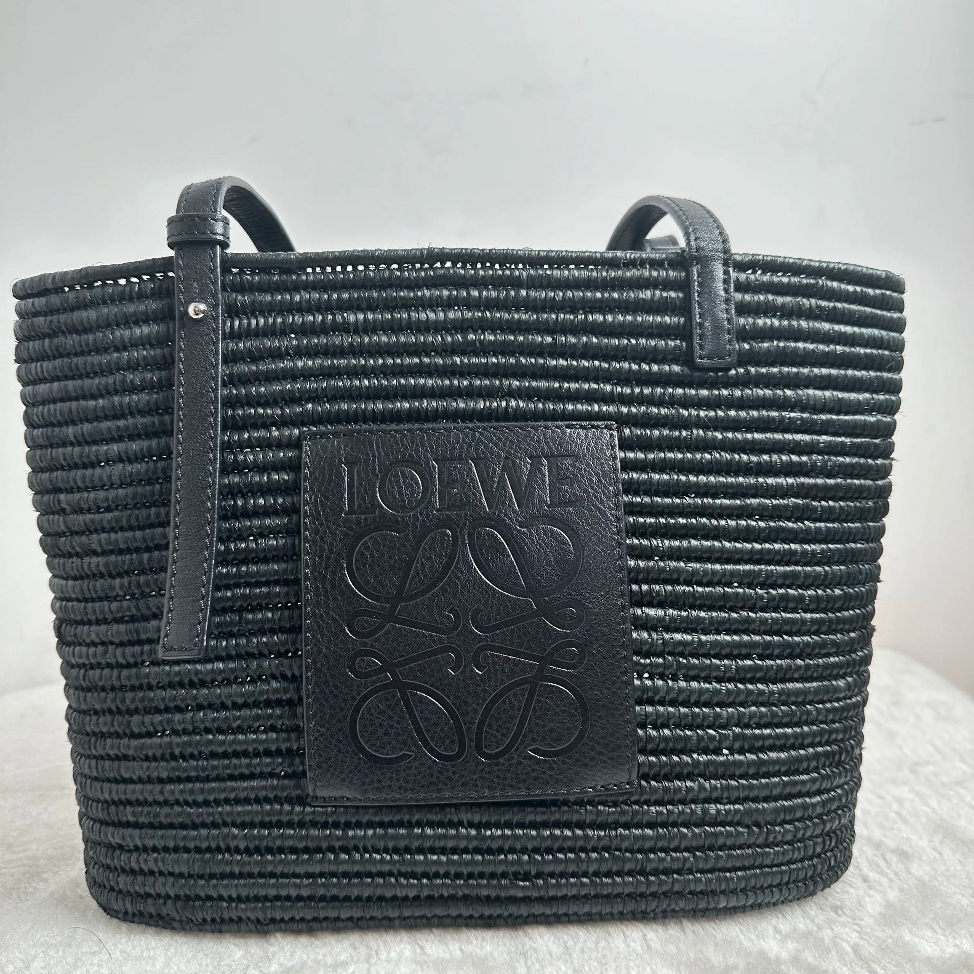 【#345】Pre-owned Loewe Basket Raffia Black Tote Handbag BJ2022